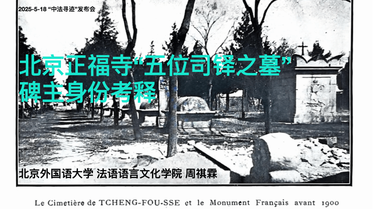 在发布会的第二部分,项目负责人2022级本科生周祺霖介绍了“中法寻迹”项目框架下的学术成果。他从“中法寻迹”实践团与2024年7月实地考察时发现的一通墓碑说起,从研究问题、文献综述、研究结论,未来展望等方面向与会嘉宾作题为《北京正福寺“五位司铎之墓”碑主身份考释》的学术报告,展现了法国耶稣会士在早期中法文化交流中担当的重要角色。论文分享后,朱梓华对中法寻迹品牌下的新项目“留法华人研究”进行了介绍,大家对新项目的开展表示期待。