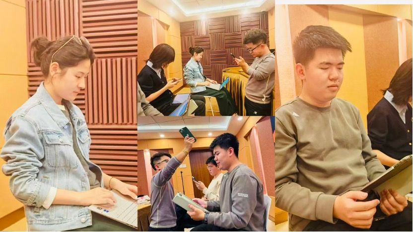 本科生党支部深度参与了国内首部“红楼”主题多语种皮影戏《红楼梦·宝黛共读西厢》法语版的创译与配音工作。面对古典文学意象转换的挑战,学生在专业教师指导下反复推敲,精准把握台词情感与表演节奏,成功完成全剧配音,为传统非遗艺术的国际化表达开辟了新途径,作品于2025年11月在海淀区大有书馆成功首演。